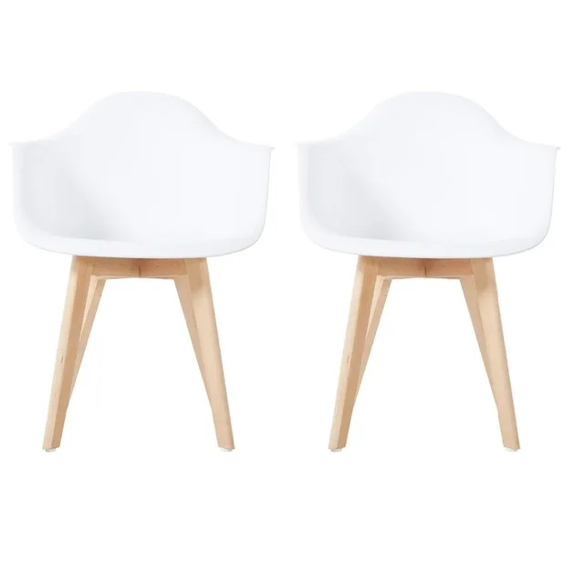 Best Price EGGREE Set of 2 Armchairs Inspire Dining Plastic Chairs Lounge Designer Furniture Solid wood Legs Living Room - White