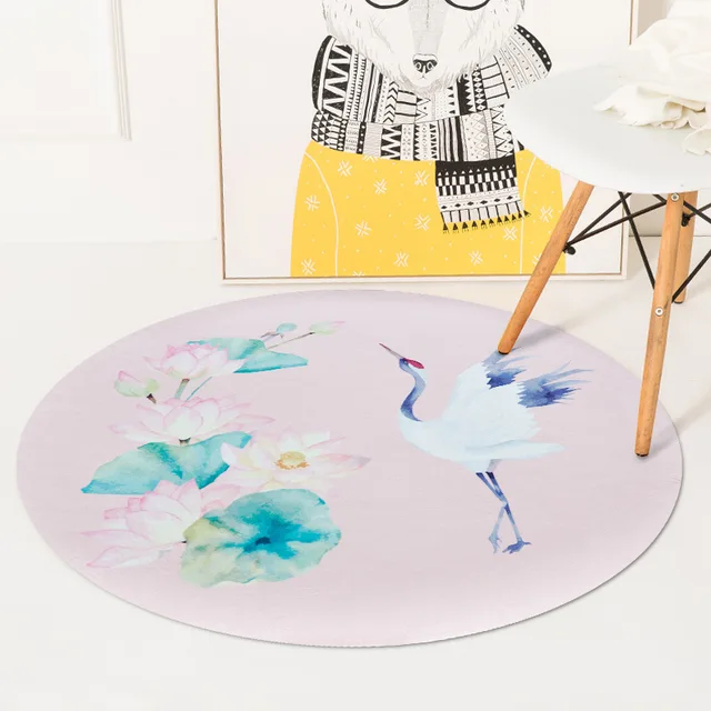 Cheap Auspicious Crane Peacock Round Carpets For Living Room Computer Chair Round Mat Area Rug Bedroom Home Decoration Tapetes R599