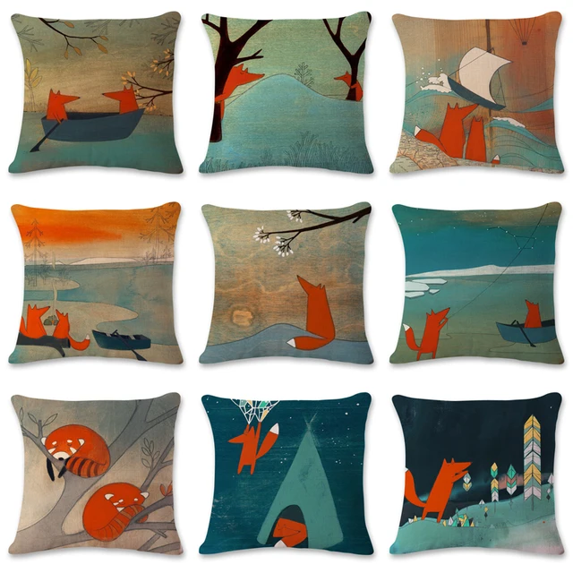 Special Offers CUSCOV Fox Animal Geometric Linen Pillowcase Wedding Decoration Sofa Cushion Cover Home Bedding Living Room Chair Pillow Cover
